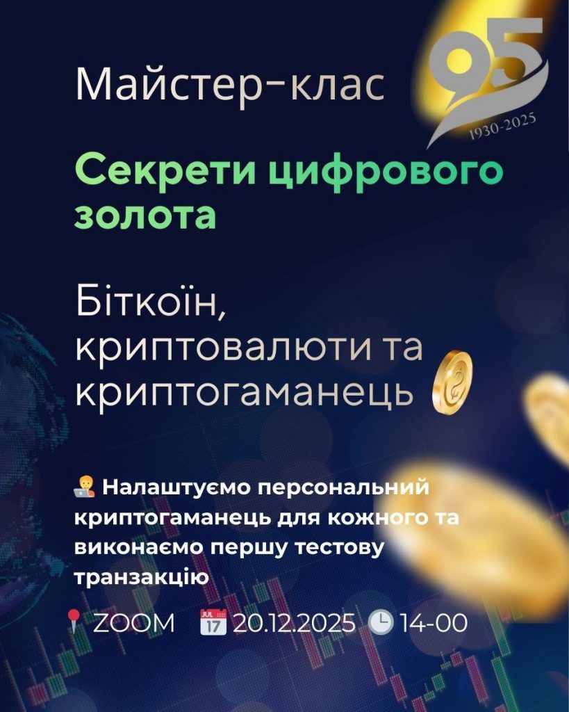 Майстер-клас «Секрети цифрового золота. Біткоїн, криптовалюти та криптогаманець» від ННІ ІТ ХНЕУ імені Семена Кузнеця.